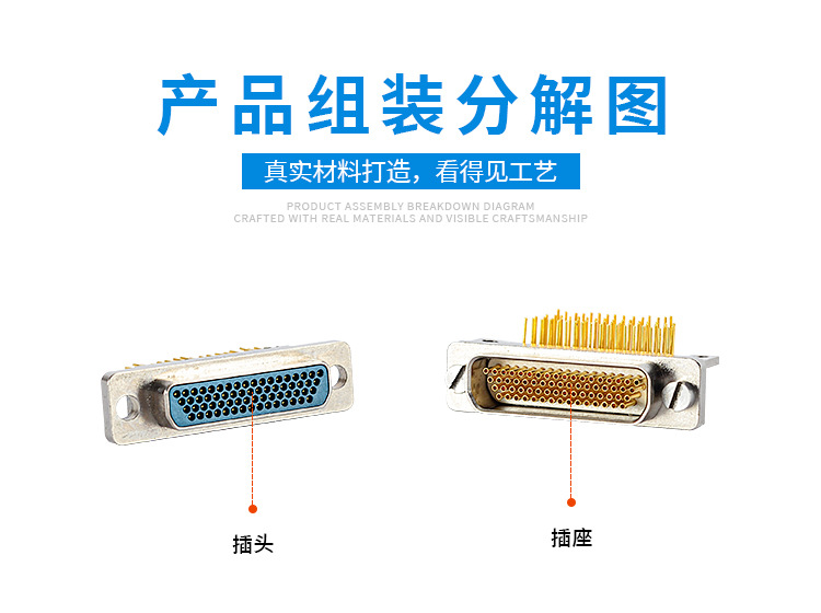 采用绞线式麻花针,接点间距为1.27mm,排距为1.1mm。